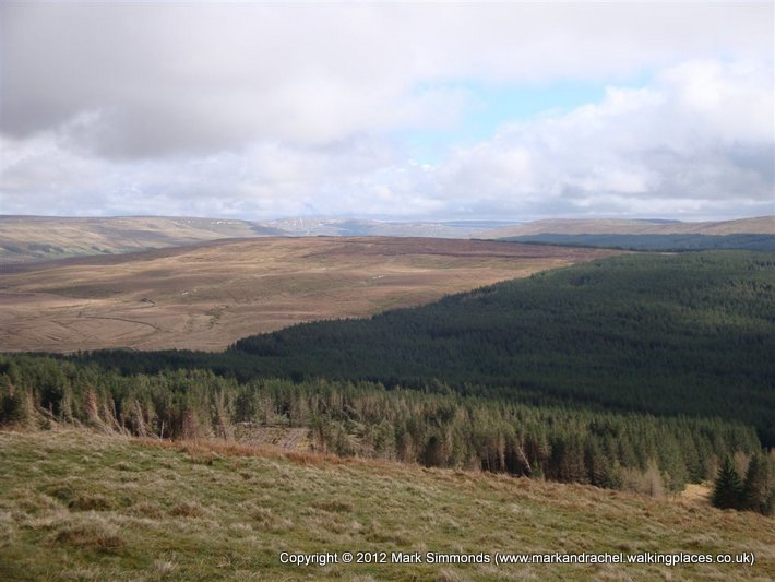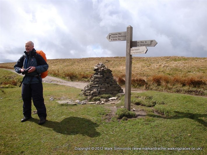 We rejoined the route which took us steeply uphill where we could look down on the huge forestry plantation. The route was perhaps no more than a couple of hundred yards through the top corner of the trees, why they hadn’t re-routed the path is a mystery. The going was still boggy but the rain had finally stopped. We arrived at the highest point of the Dales Way, where it joins the Pennine Way. We let the girls go, they had higher mileages to do than us and we were in no mood to race. Besides, we couldn’t get into our B&B until after 4pm anyway.