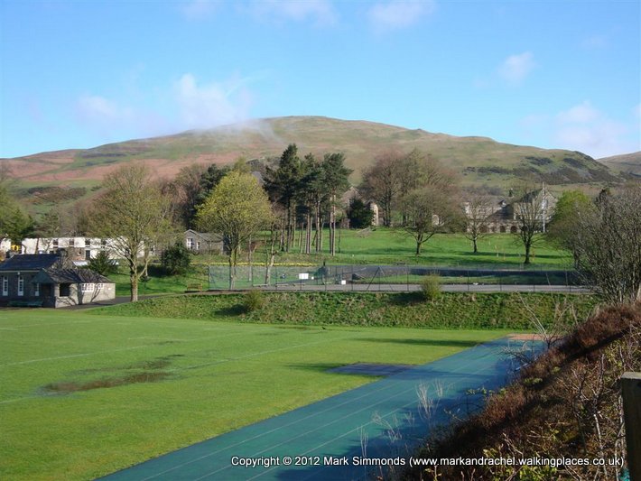 The forecast was mixed. There was a chance we would have a dry day but heavy rain was suggested, albeit showers later in the day. We had stowed our wet weather gear and it was good to be a bit less bundled up. The sun was out as we retraced our steps back through Sedbergh School, down to the river and the main path. The playing fields were waterlogged and flooded in places; the River Rawthey itself was running very high.