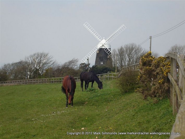 A sharp ascent onto Newtimber Hill and West Hill awaited us and by the time we had reached the top we were puffing like steam trains. We paused at the top and took in the view of the Sussex Weald with Jack and Jill Windmills, our next point of interest, a good couple of miles away. But first we had to descend to Pyecombe, passing a riding school that was having some kind of event, and then cross the A23 by way of a road bridge. It was then up again past the golf course before turning left towards Jack and Jill.