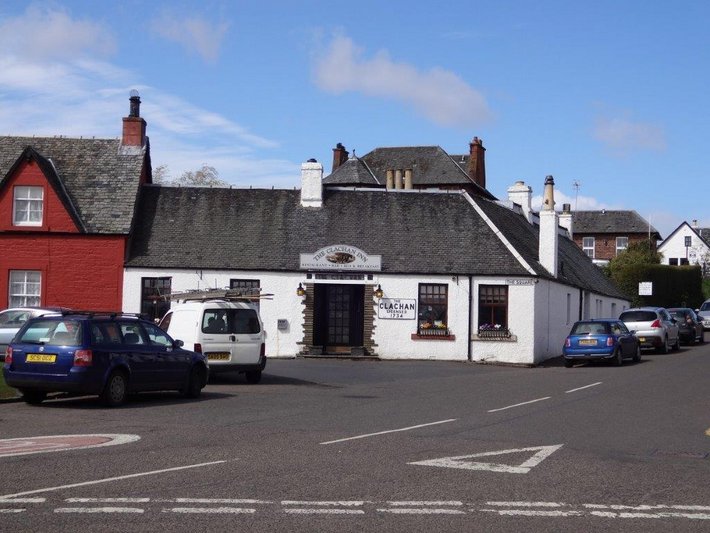 Ablutions done, we walked across the street to the Clachan Inn for something to eat on the dot of 6pm. A couple of Germans were already there and before long it got quite full. The Belgians arrived, but went in the other bar, and we also recognised another couple we had seen near Glengoyne.